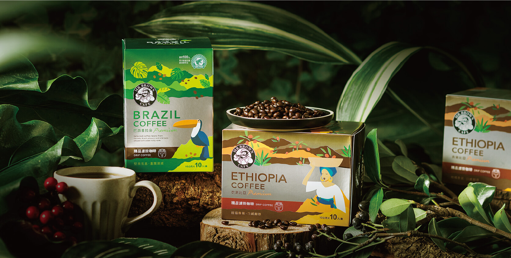 在探索咖啡風味的路上,伯朗咖啡多年來以專業、高品質為精神指針,提供台灣消費者多樣化的咖啡飲品選擇。這次伯朗咖啡所推出的單品系列,特選來自“巴西100%雨林聯盟認證農場咖啡豆”與“衣索比亞單品咖啡豆”,將帶有產地風情的精緻品飲享受帶進台灣市場。以味蕾為媒介,品味當地特色與風味,更幫助優良咖啡莊園得以永續經營。在包裝設計的溝通上,為強化產地來源的特殊性,名象設計團隊透過直覺性的方式,將產地風情以拼貼設計手法呈現。巧妙的區分版面,讓品名與罐身資訊更清淅易讀。熱情又不失大氣理性的視覺配比,襯托出單品咖啡的精緻價值感。